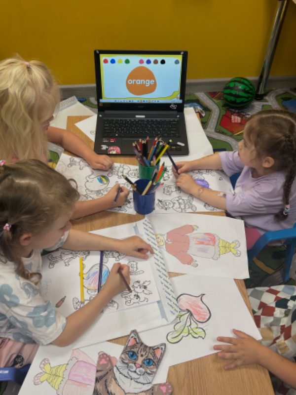 Для детей 5–7 лет занятия проходят в игровой форме: через песни, карточки, движения, диалоги и интересные задания. Так английский язык воспринимается естественно, без стресса и перегрузки, а ребёнок начинает понимать и использовать слова и фразы уже с первых занятий.